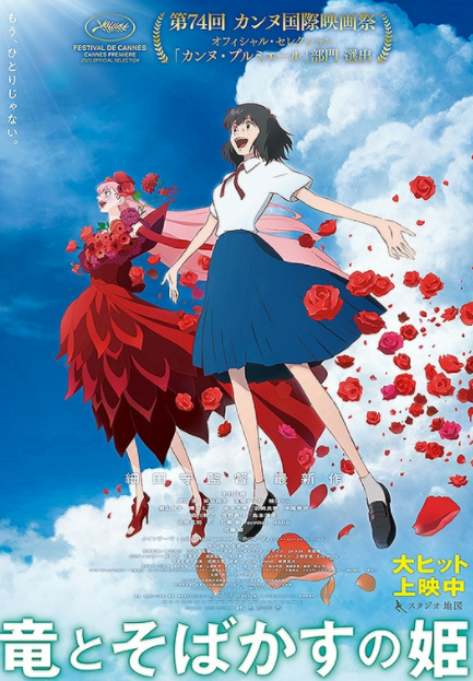2021年新作《龍與雀斑公主》繼續(xù)將細田守推向職業(yè)高峰,影片不僅在戛納電影節(jié)首映,此后通過發(fā)行全球狂攬六千萬美元,創(chuàng)下其個人票房的最高紀錄。在片中,導演繼續(xù)發(fā)揮他所擅長的現(xiàn)代性敘事,在真實社會和元宇宙兩個維度設置故事場景:生活在日本鄉(xiāng)村的17歲女孩小鈴因為母親的意外逝世陷入了生存危機。學校里,她郁郁寡歡,除了閨蜜小弘之外,無法與人交心。同時,她放棄了自己最為熱愛的興趣:唱歌。但在一次偶然的機會中,她進入了網(wǎng)絡游戲U宏大的虛擬社區(qū),以“貝兒”的身份在一個完全匿名的世界中用自己的歌聲獲得了大眾的認可,漸漸找回了自我。然而,U世界中駭人聽聞的破壞王“龍”將整個元宇宙都攪動得不甚安寧。在與“龍”的交鋒中,“貝兒”無意間發(fā)現(xiàn)了他背后的秘密,見證了他狂暴表面下的脆弱。小鈴決心在真實世界里找到“龍”的玩家,并完成對他的救贖。于是,她開始了在虛擬空間和真實世界中的雙重尋找……